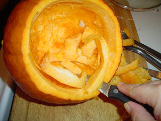 Place your stem as shown; gently lay the top layer of pumpkin down,