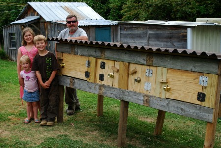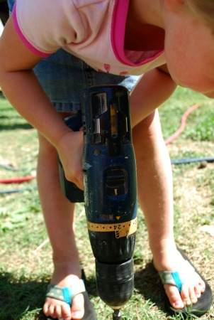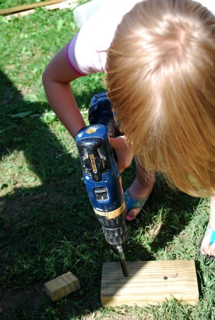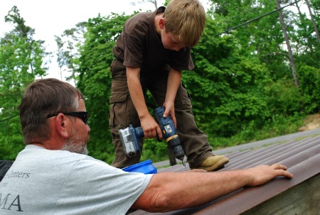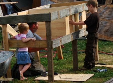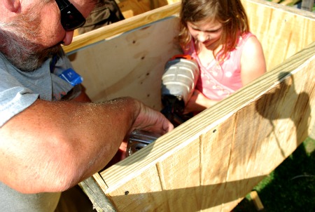 I looked out from the back deck and I see Dad had plenty of help to make the rabbit hutch.