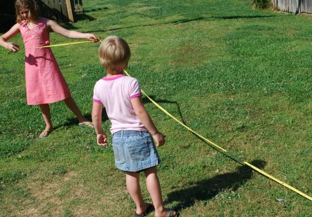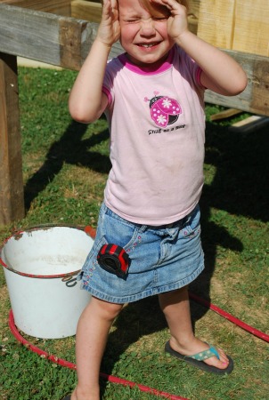 Of course Peachy-girl had to be ready to help so she strapped a tape measure to her pocket…