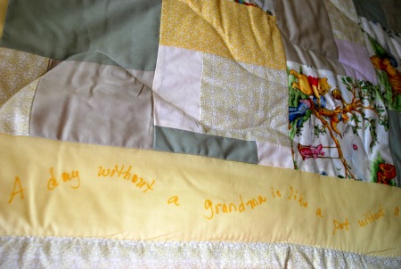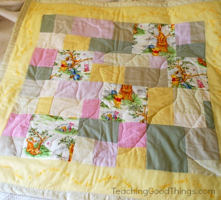 Frugality: Quilts and quilted gifts can be made using fabric from things you would have normally tossed. Quilting fabric can come from sheets, curtains, shirts and skirts!