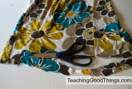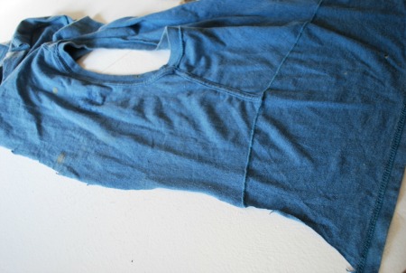 Start at the bottom and cut in a continual strip, like a spiral. I cut all the way up to the arm pits and even working through some of those because seams and awkwardness doesn’t matter in this project. Also, if there are pockets, just cut through them as if they weren’t there, it just adds a little bulk here and there… I mean it adds character!