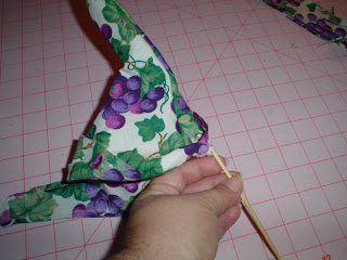 Sew a 1/4" seam all the way around, except for the bottom, leave that open.You will need to trim the points as close to the seam as possible.