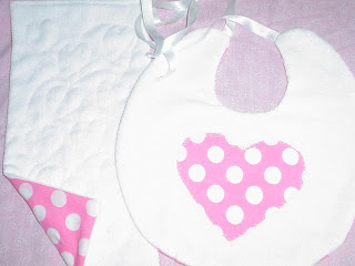 Adorable! My mom used to buy dish towels and cut a hole in the middle and then sew trim around it. You just pull it over the babies head. I always loved those.