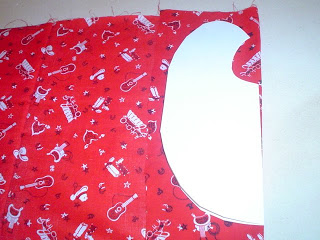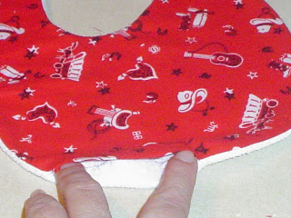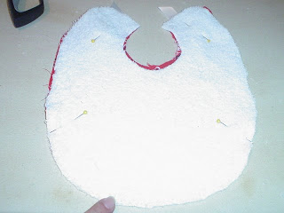 Starting at the bottom of the bib, sew around using about 1/4-1/2" seam allowance.