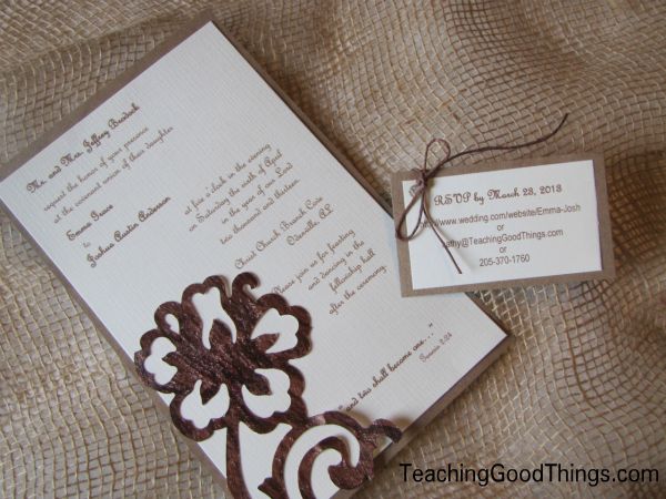 Emma’s wedding is going to have a rustic theme, which really makes it easy for decorating. And because I have this creative-need-to-be-unique-on-a-budget thing in me, I figured I’d make the invitations. So instead of spending a lot of money, I spent a lot of time, but it was a labor of love that I think does reflect her personality.