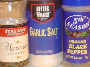 Throw in two tablespoons Italian seasoning, two teaspoons garlic salt and one-half teaspoon black pepper.