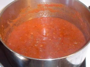 In a sauce pan, heat up some sauce, at least 4 cups worth.