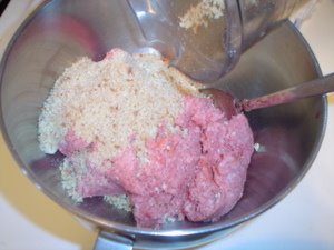 Add bread crumbs or cracker crumbs. I used whole wheat bread crumbs…slipping in extra nutrition.